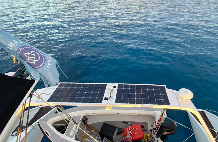 Combined with their SunPower E-flex panels, which have been aboard for 2.5 years (YouTube Ep.262) they will now have 2,010W of solar ready to head into the Pacific - awesome!